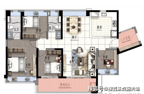 南向约 99㎡3+1 房 2 卫,为宽敞套间设想,无效衔接河汉外溢的栖身需求,